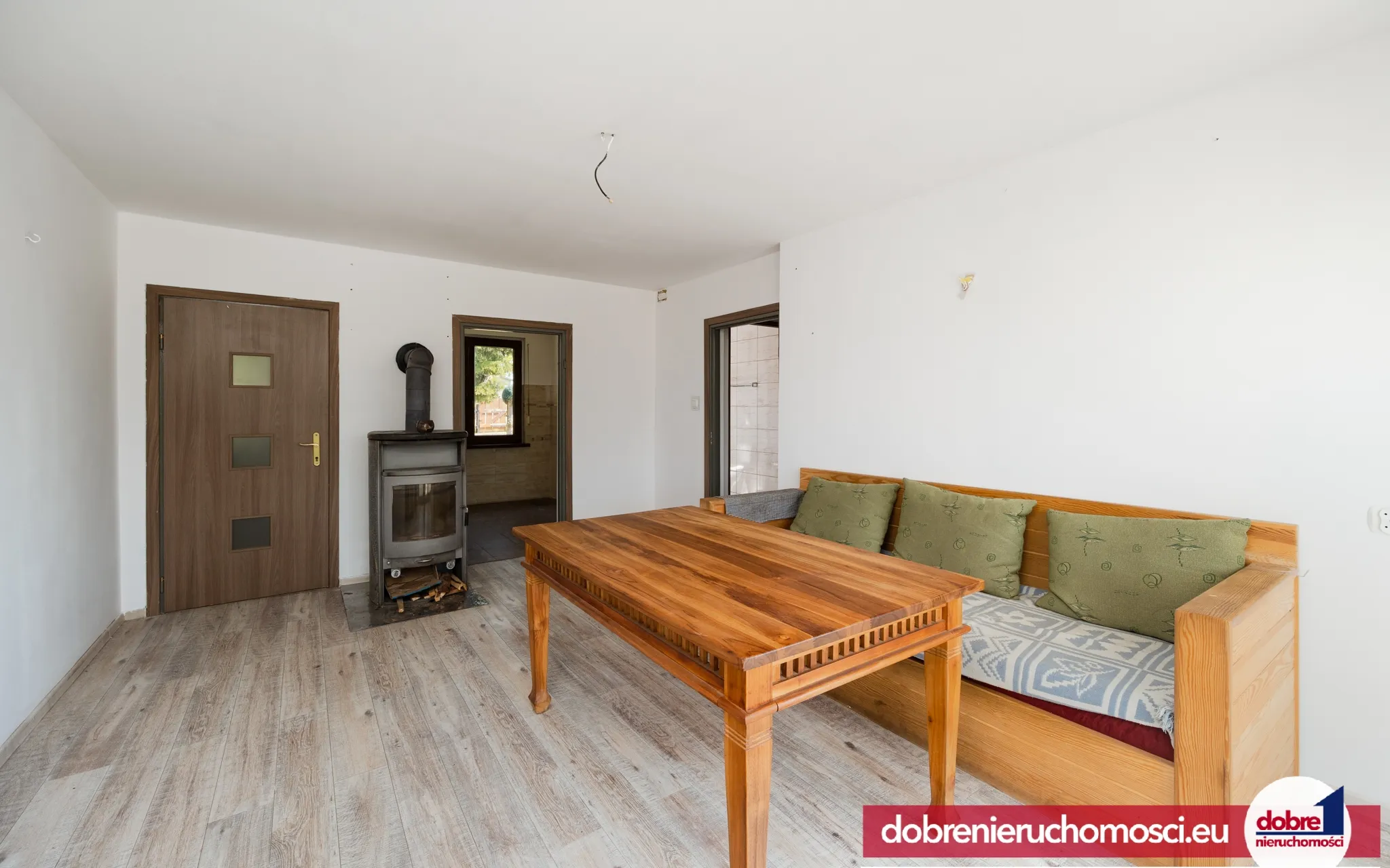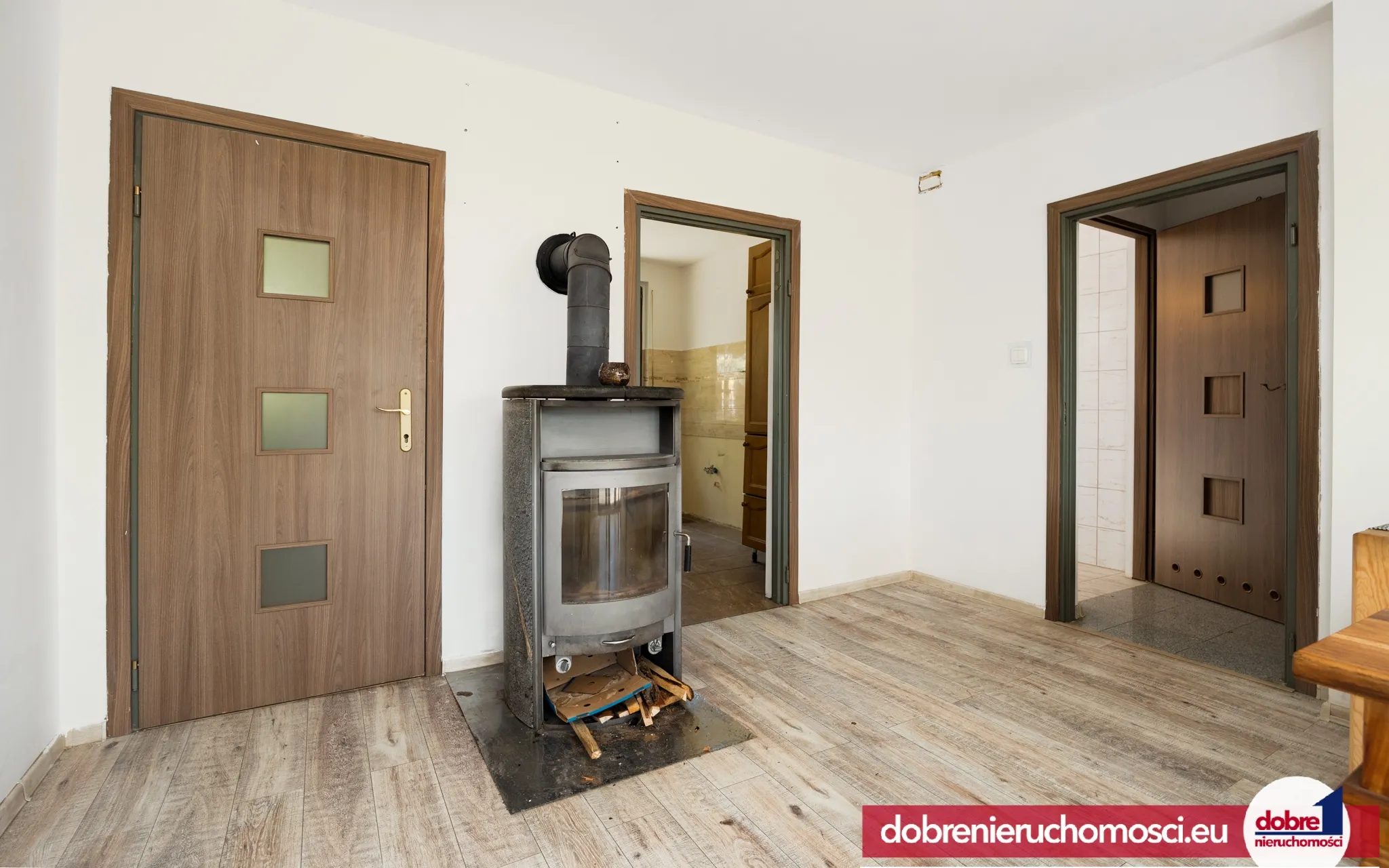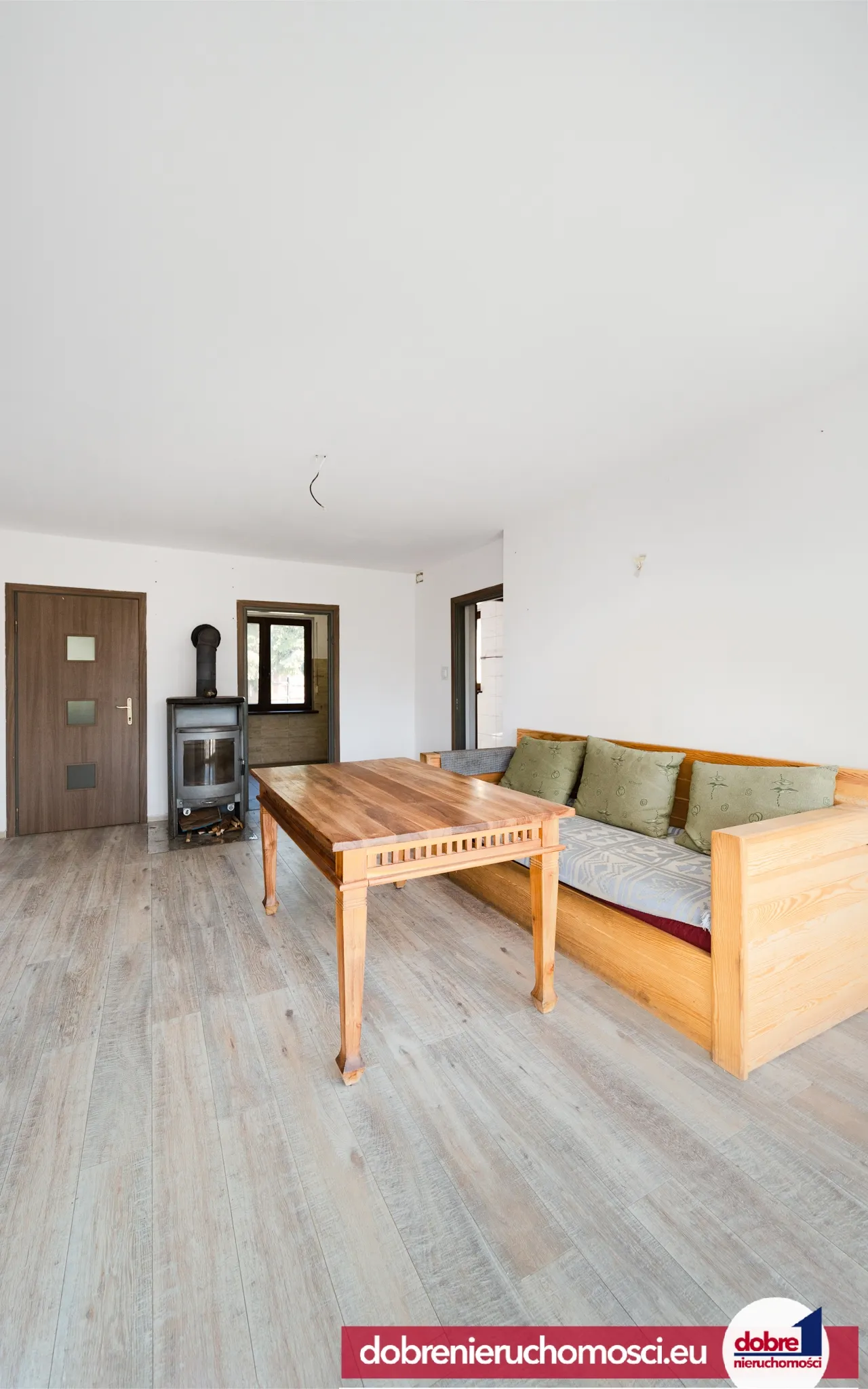 Ten parterowy dom, otoczony pięknymi widokami na lasy i rzekę, to prawdziwa oaza ciszy i spokoju. W jego skład wchodzą trzy komfortowe pokoje, funkcjonalna kuchnia z możliwością zabudowy, łazienka z prysznicem oraz przedpokój. W salonie znajduje się piec kominkowy marki Hark o mocy 8 kW, który zapewni ciepło i przytulność w chłodne dni.